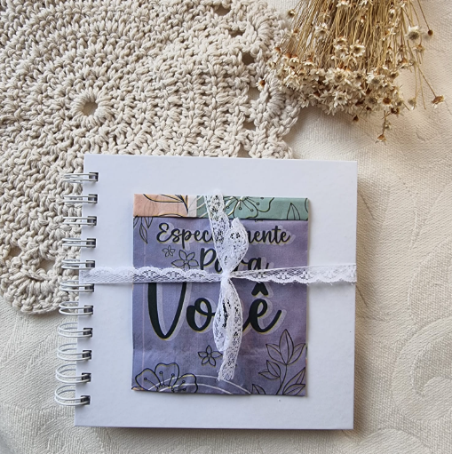 Caderno espiral de capa dura, tamanho 15x15cm, com 50 folhas lisas de alta gramatura (120g). Perfeito para fazer colagem!