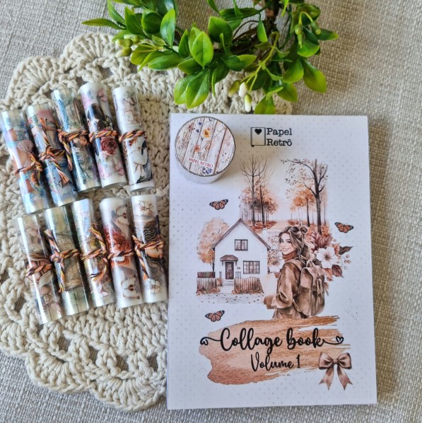 Primavera no Campo - Destacável (3 loops), Dias de Verão - Destacável (3 loops), Boho Vibes (2 loops), Delicadeza Vintage (2 loops) + 1 Washi Tape (Madeira com Flores) Medindo 3cmx3m + 1 Collage Book (Volume 1) Tamanho A5, com 70 Páginas de 90g/m² .