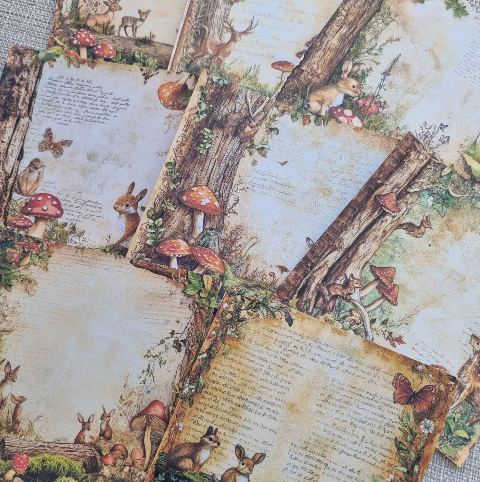 Papéis Estampados 15x15cm Papel Retrô 8pçs - Floresta com Escritos