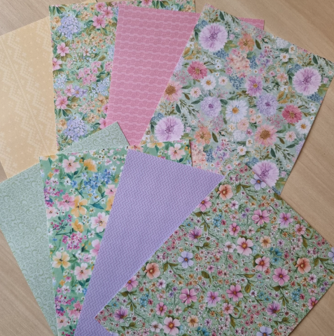 Kit com 8 papéis estampados tamanho A5, gramatura 120g.