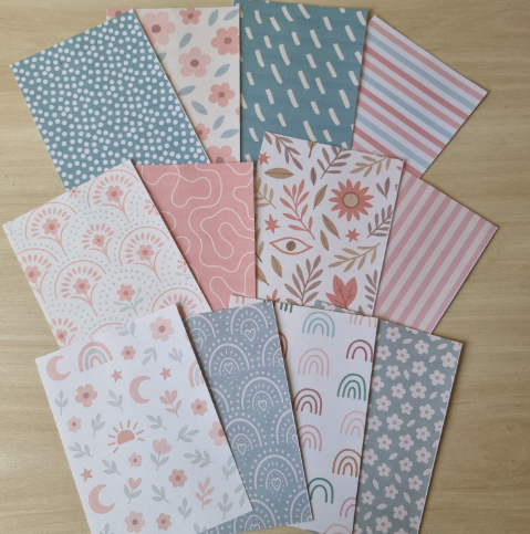 Papéis Estampados A6 Papel Retrô 12pçs - Estampas Boho