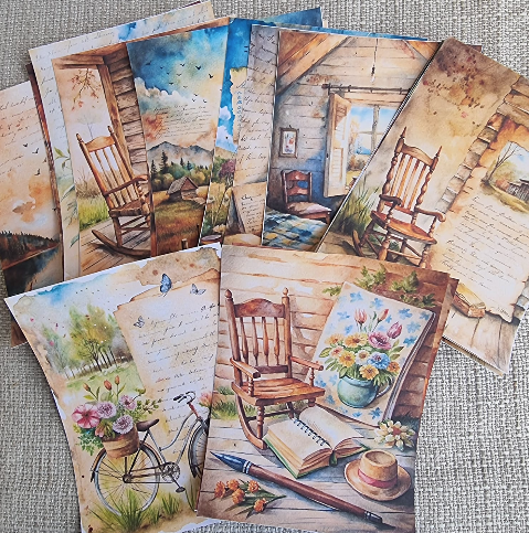 Papéis Estampados A6 Papel Retrô 16pçs - Vida no Campo