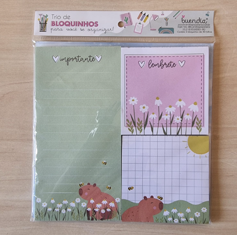 Trio de Bloquinhos com 40 folhas decoradas cada, da marca Buendia.